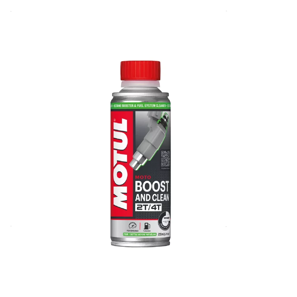 - MOTUL BOOST AND CLEAN MOTO é uma fórmula poderosa que aumenta a octanagem,